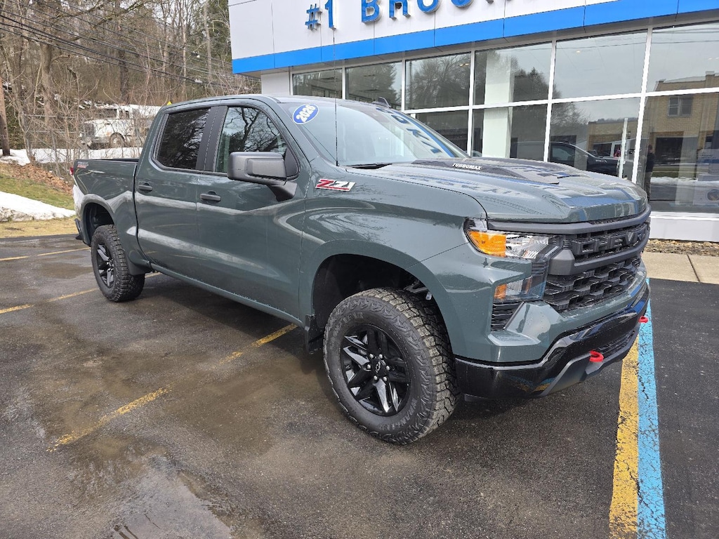 This New 2026 Chevrolet Silverado 1500 Custom Trail Boss, is Cypress Gray in color with a Jet Black interior. Stock Number O191638. You can connect with us by calling (877) 223-2395. Important Package and Feature Information Custom Convenience PackageRemote Vehicle Starter SystemElectric Rear-Window DefoggerEZ Lift Power Lock and Release TailgateLED Cargo Area LightingTheft Deterrent System (unauthorized Entry)Preferred Equipment Group 2CX10-Way Power Driver Seat with LumbarRear 60/40 Folding Bench Seat (folds Up)Power Front Windows with Passenger Express DownPower Rear Windows with Express DownDeep-Tinted GlassRemote Keyless EntryPower Front Windows with Driver Express Up/down40/20/40 Front Split-Bench SeatColor-Keyed Carpeting Floor CoveringFront Rubberized Vinyl Floor MatsRear Rubberized-Vinyl Floor MatsBluetooth For PhoneAuto-Locking Rear DifferentialElectronic Cruise Control120-Volt Interior Power OutletManual Tilt Wheel Steering Column2-Speed Electronic Autotrac Transfer CaseChevy Safety AssistStandard TailgateLT275/65R18C MT BW Tires18" X 8.5" Black Painted Aluminum WheelsCloth Seat TrimTeen DriverSiriusXM Trial SubscriptionDual Rear USB Ports (charge Only)3.5" Monochromatic Display Driver Info CenterOnStar Services CapablePerformance Red Recovery HooksTire Pressure Monitoring SystemHD Rear Vision CameraSuspension PackageTrailering Package Safety and Security Forward collision mitigation - Forward thinking. You look away for just a second and suddenly the vehicle in front of you has stopped. That's when the forward collision mitigation system comes to life. When it senses an impending impact, it will activate a combination of features to help prevent or reduce the severity of an accident. Forward collision mitigation is always looking ahead. Pedestrian impact prevention - An extra step toward safety. Pedestrians don't always stop, look, and listen, but with Pedestrian Impact Prevention, your vehicle is equipped to better see them and avoid them. This system constantly monitors the road ahead to identify and track pedestrians. It projects that image to an interior display screen, AND should an impact become likely, Pedestrian impact prevention takes steps to avoid a collision. Rear camera - Watching your back! The rear camera helps you see obstacles and hazards you otherwise couldn't by showing enhanced images of what is behind you. The rear camera is an extra set of eyes that's both convenient and safe.Technology and Telematics Apple CarPlay/Android Auto smart device wireless mirroring Mobile hotspot - WiFi on the fly. Connect your devices to the Internet through your vehicles private mobile hotspot and take the internet wherever your journey takes you, without eating up your data allowance. Find the hotspot with mobile hotspot. EMISSIONS, COLORADO, CONNECTICUT, DELAWARE, MAINE, MARYLAND, MASSACHUSETTS, MINNESOTA, NEVADA, NEW JERSEY, NEW MEXICO, NEW YORK, OREGON, PENNSYLVANIA, RHODE ISLAND, VERMONT AND WASHINGTON STATE REQUIREMENTS, ENGINE, TURBOMAX, TRANSMISSION, 8-SPEED AUTOMATIC, ELECTRONICALLY CONTROLLED, GVWR, 7000 LBS. (3175 KG), REAR AXLE, 3.42 RATIO, WHEELS, 18" X 8.5" (45.7 CM X 21.6 CM) HIGH GLOSS BLACK PAINTED ALUMINUM, TIRES, LT275/65R18C BLACKWALL GOODYEAR WRANGLER TERRITORY MT, TIRE, SPARE 265/70R17SL ALL-SEASON, BLACKWALL, CYPRESS GRAY, SEATS, FRONT 40/20/40 SPLIT-BENCH, JET BLACK, CLOTH SEAT TRIM, AUDIO SYSTEM, CHEVROLET INFOTAINMENT 3 SYSTEM, TAILGATE, MULTI-FLEX At Brookville Chevrolet, were here to Serve you! Our staff is 100% dedicated to customer satisfaction and we understand that you need clear, transparent information throughout the car buying process. With our live market pricing philosophy, we offer the right cars at the right price, and the transparency to back it up! FINANCING OPTIONS: Take advantage of our attractive low-rate financing options. Our access to various Credit Unions and National Banks can provide financing for most credit levels. We can tailor a finance package to fit your need